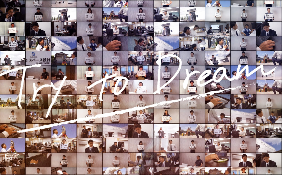構成では、社員様の挑戦に関するインタビューを軸にすることで、映像に説得力を持たせました。また、社員の皆様に「今後挑戦したいこと」をフリップに書いて掲げていただき、過去に声優を目指していた社員様にはナレーションを担当していただくことで、「挑戦」というテーマと共に、社内の温かい雰囲気も演出しました。