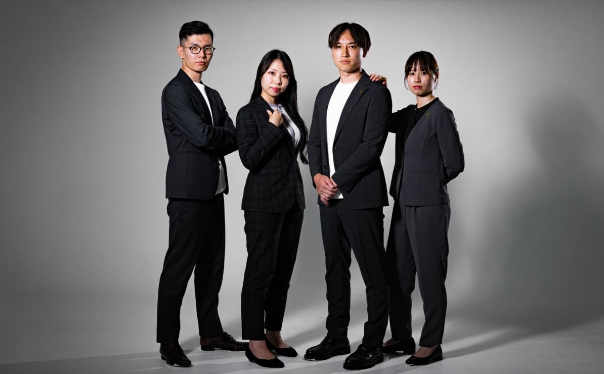 クライアント様からは「この人たちならやってくれそう」という頼もしさを感じる雰囲気がいいとのご依頼。そのため撮影ではコントラストの高いライティングをセットし、力強さを引き出しました。